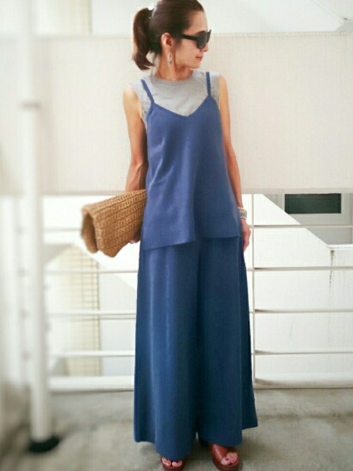 想不到要穿什麼的時候,成套的細肩帶寬褲就是女孩們的好幫手~如果怕單穿過於單調,可以利用存在感十足的手拿包、大型手環為整體造型加分!