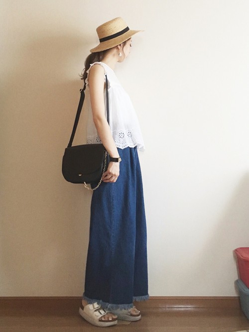 牛仔寬褲怎麼搭?當然是清爽的白色上衣囉!建議妞妞們選擇白上衣時,可以著重於小細節的設計讓穿搭更有驚喜感~草編單品則是能增加夏日氛圍,更是增加造型豐富度的一大幫手~