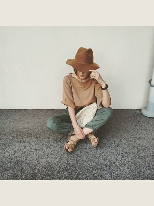紳士帽一般來說較無法跟夏天聯想在一起,但是與同樣是大地色系的軍綠色、土黃色的單品都換上薄透的材質以及設計感十足的涼鞋,是不是跳脫讓紳士帽跳季節限定脫,變得有型又清爽呢~