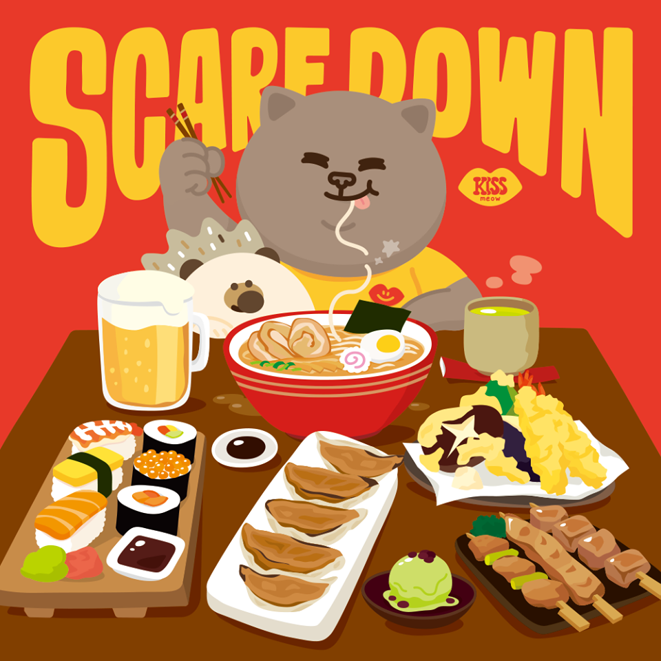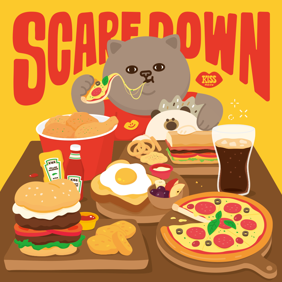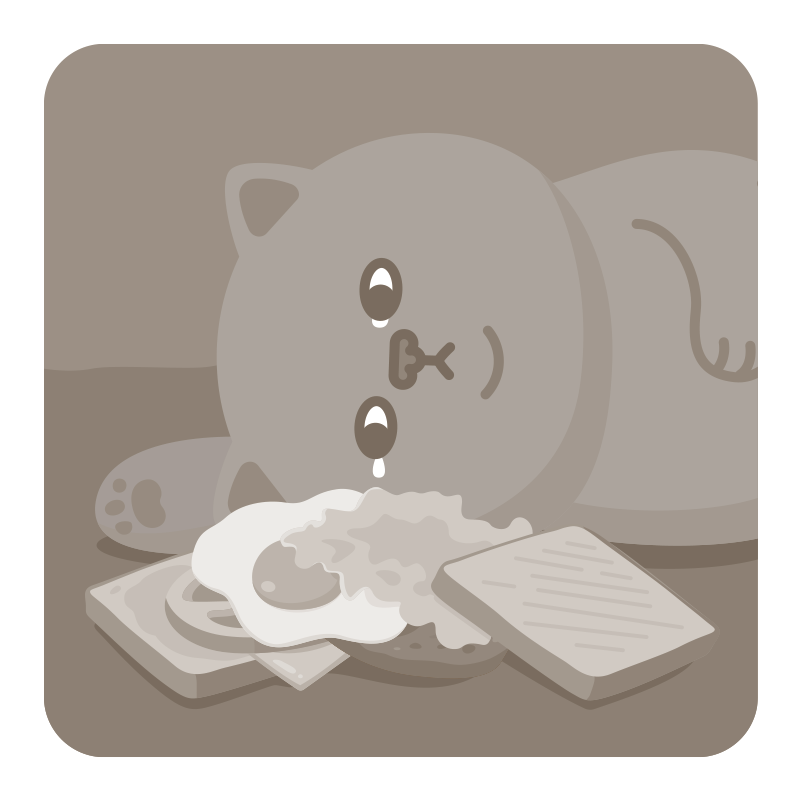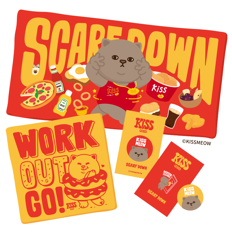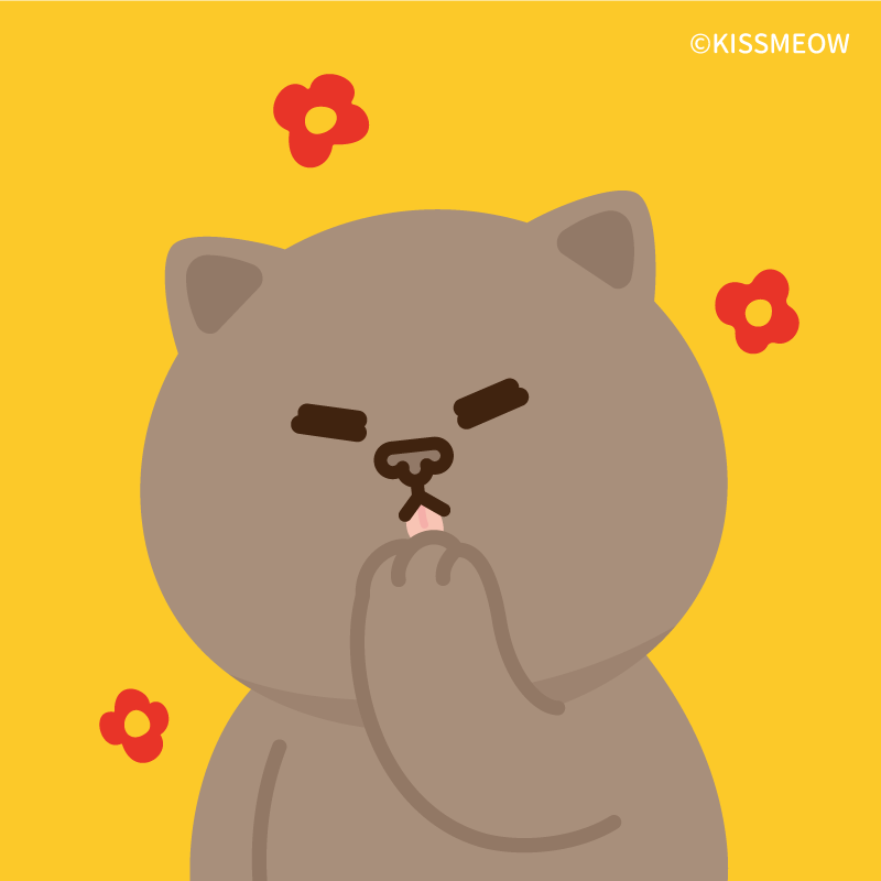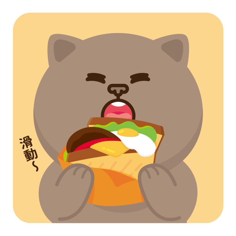 讓我們歡迎完食少女「肥貓吻吻」閃亮登場(拍手)!吻吻是隻外表一副放空模樣,但內心卻充滿各種少女心小劇場、喜歡美食、因為在乎自己身材所以用運動來維持肥美曲線的可愛小貓咪。