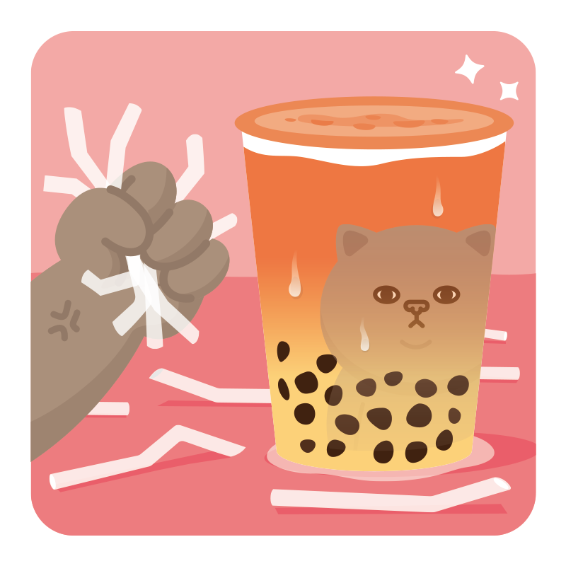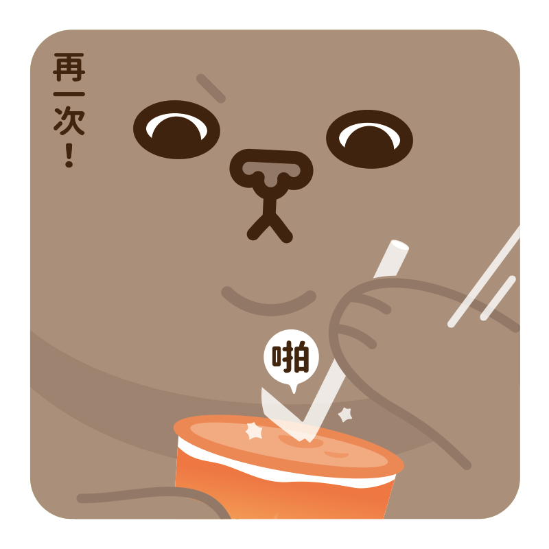 除了吃貨生活外,也有「日常幽默」系列,例如這幅吸管斷掉的插畫,怎麼插就是一直失敗,結果吸管就這樣,在還沒使用前就先結束它的生命⋯⋯妞編輯也體驗過這種被吸管整的時候,真的會很生氣呀!