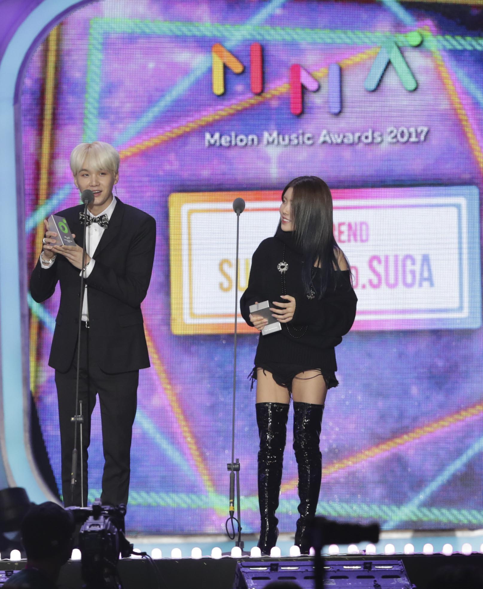 防彈少年團的SUGA和SURAN一起獲得「HOT TREND賞」,SURAN今年推出的新歌〈If I Get Drunk Today〉霸佔音源,而這首歌由「閔PD」SUGA製作。SURAN前面拿下「R&B賞」時,也特別感謝了SUGA能夠給予她如此好的作品!
