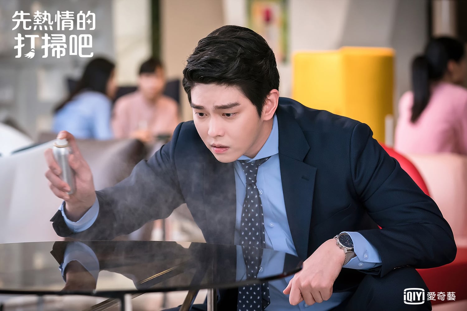 除了《先熱情地清掃吧》的製作幾經波折之外,故事設定也相當有趣,裡面的人物充滿了反差,尹鈞相在劇中飾演擁有潔癖症的清潔公司CEO,不但拒絕與他人有肌膚接觸,就連一粒灰塵也無法容忍。