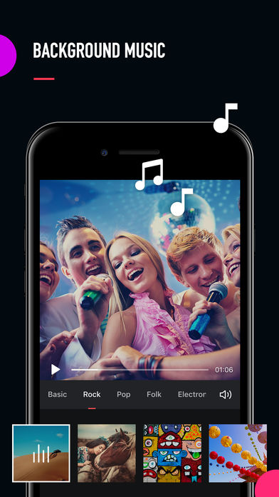 可拍攝正方形、橫、豎版型,時長則分為10秒、15秒、20秒至1分鐘等,並可以替影片分段,連接一至三支影片。而要讓影片變得更酷炫特別,就得靠內建的濾鏡、MV模板、貼紙素材、文字素材以及音樂啦!