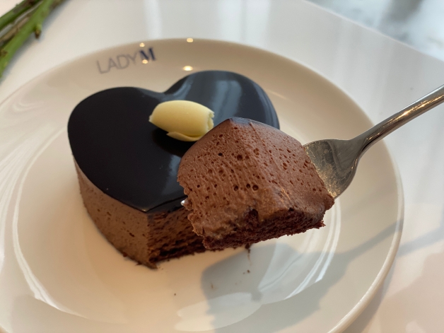 「皇冠巧克力蛋糕」是Lady M人氣熱銷品項,使用細緻又柔順的法芙娜巧克力慕斯,蛋糕體為鬆軟又綿密的巧克力海綿,苦甜滋味穿插交錯,甜而不膩的口感,相信就算是不嗜甜的男友也會被擄獲其味蕾的!