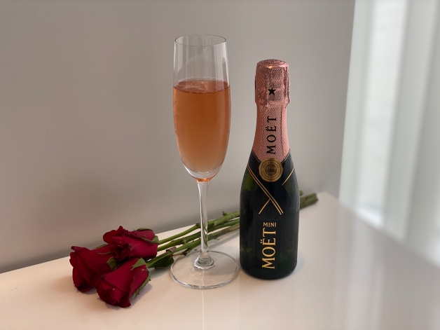 門市現場內用組合:愛心玫瑰千層蛋糕*1+愛心皇冠巧克力蛋糕*1 + Moët Brut 香檳 200ml*1+愛心蠟燭*1