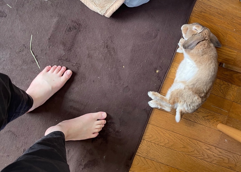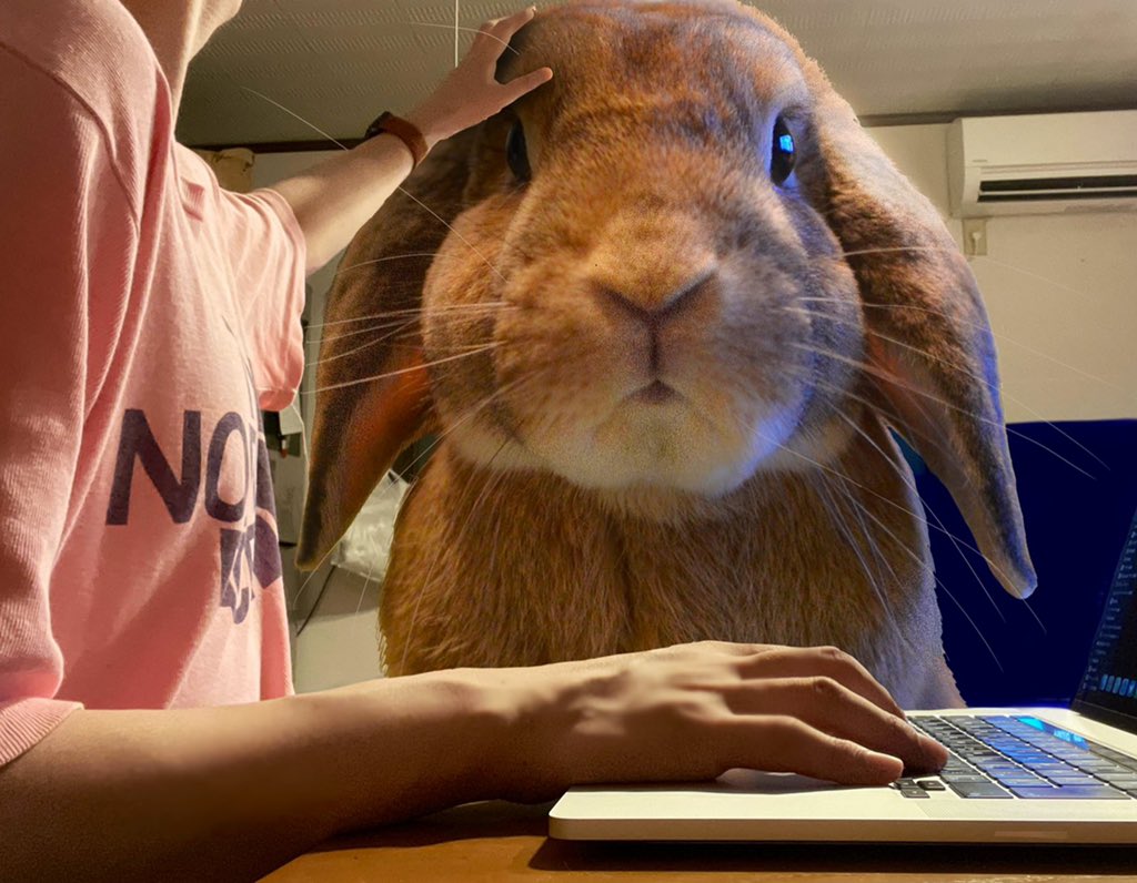 來自日本東京的推主@koedo_tyan飼養了一隻垂耳兔名叫「Mokke」,現在因為疫情的關係有部分民眾待在家裡工作,而這名推主因為WFH的關係,陪伴Mokke的時間變很多,每天都可以待在一起工作、吃飯及睡覺。有天,推主突發奇想如果自己可以跟寵物等比例大小的話會是什麼樣子?