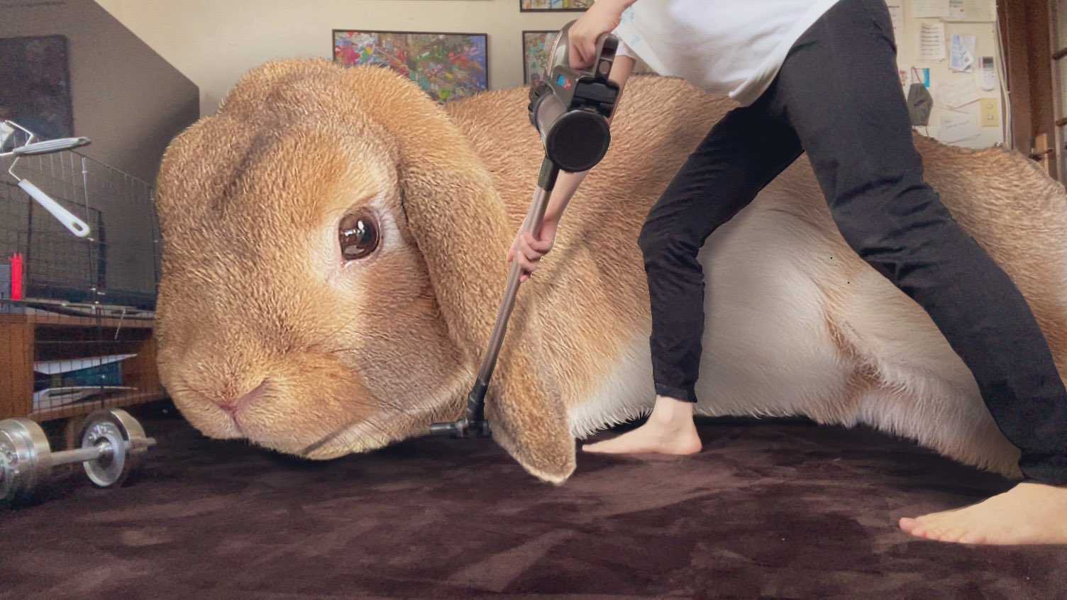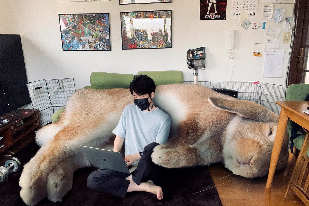 不知道大家有沒有幻想過世界被寵物統治的樣子?超大型寵物霸佔世界光想就覺得又萌又可愛吧!今天妞編輯要來分享日本一名推友,他實現了寵物巨大化的想像,看著巨無霸兔兔在家裡撒嬌的模樣,大家是不是跟著融化了呢?