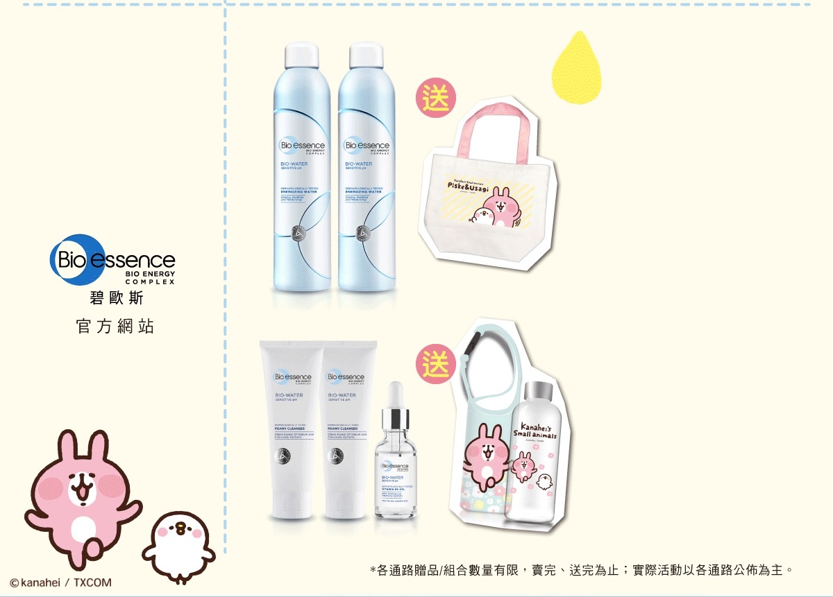 超犯規的強強聯名「碧歐斯」x「卡娜赫拉的小動物」攜手合作推出多款造型的萬用袋與水壺贈品,P助與粉紅兔兔的萌系圖案看了就好療癒喔♡♡剛好可以舒緩現在防疫的緊張心情~同時因為防疫的關係,戴口罩的頻次也很高,肌膚悶著不透氣,加上口罩布摩擦導致肌膚敏弱不適又花花的...XD