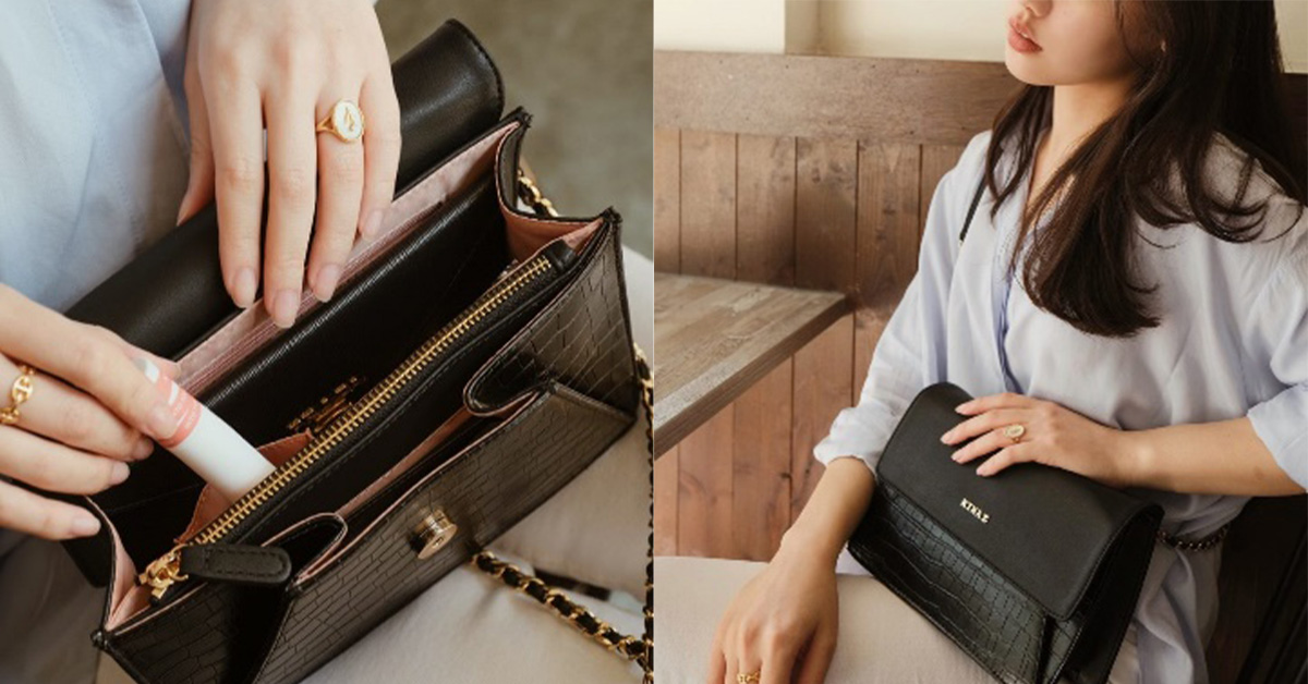 KINAZ異材質拼接鏈帶掀蓋手拿斜背包