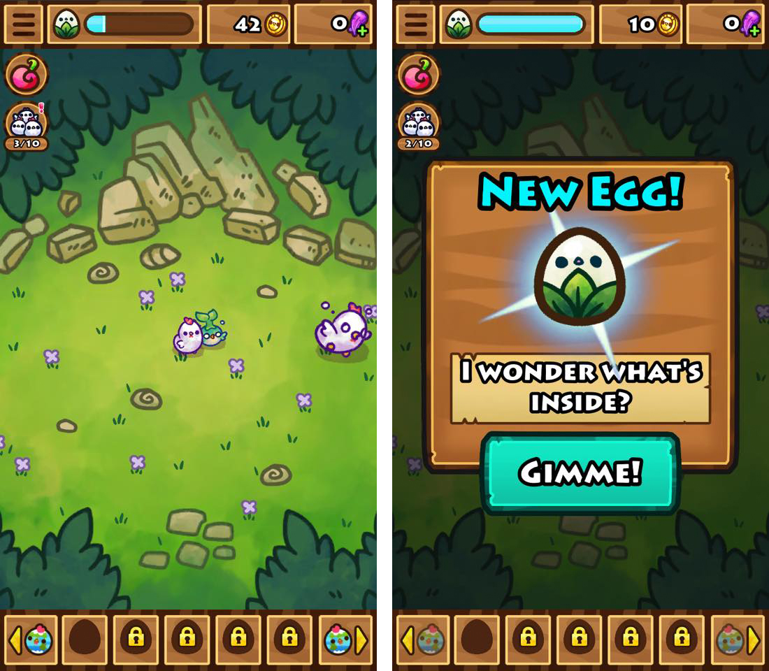 每隻小生物破蛋而出之後,我們可以用不時掉落的金幣或是觀看廣告獲取飼料,把小生物餵養長大!而且體積也會隨著等級越來越肥大喲~(圓滾滾的太可愛啦)