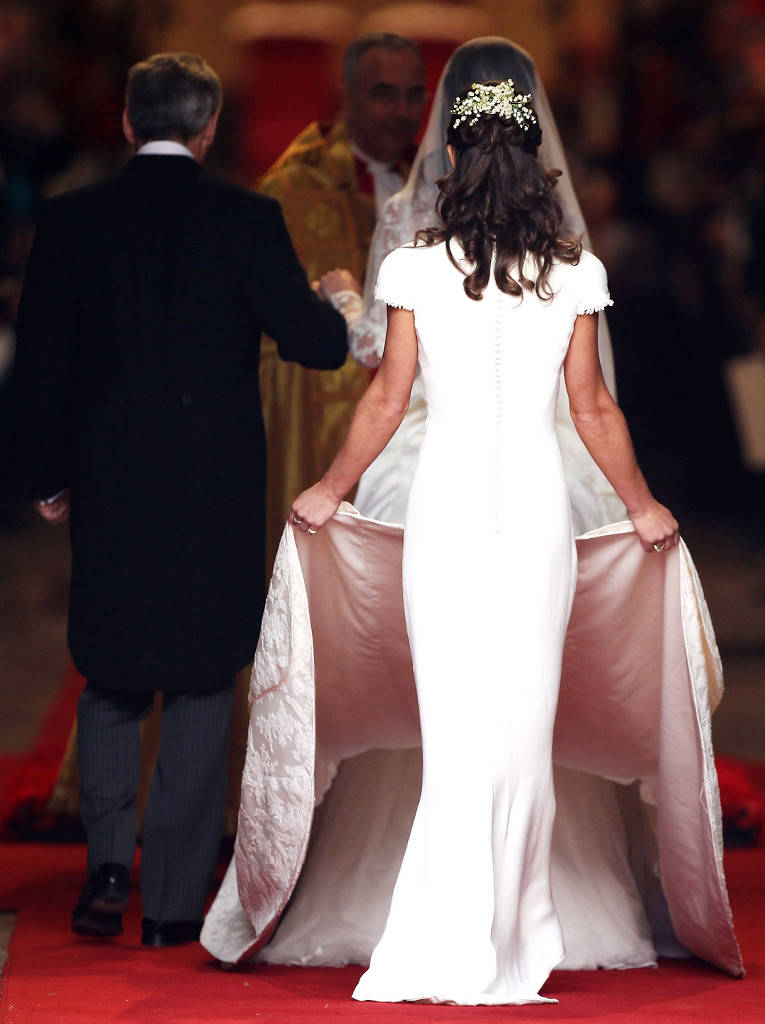 記得琵琶在姊姊凱特王妃大婚擔任伴娘,替她拉禮服裙擺時,被媒體捕捉到背面的完美身材嗎?這件出自Alexander McQueen的禮服,勾勒出她葫蘆般的曼妙身材曲線,差點搶了凱特王妃的鋒頭!