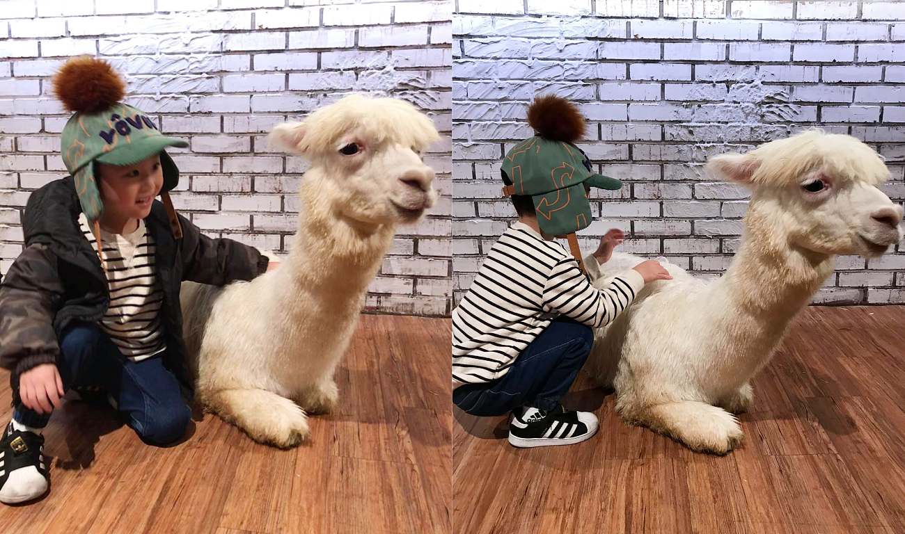 如果你的孩子不太敢餵動物,那找小隻的小小,因為小麥很貪吃,會貪吃的一直跟你要,並積極地尋找你另一隻手上的食物,所以小朋友會比較害怕;小麥還會自己走到櫃檯去要紅蘿蔔,多多都一直說「小麥又去買單了」,你看牠有多貪吃!基本上羊駝就是很溫馴的動物,但要請大家不要從後面拍牠們屁股,牠們會嚇到,其他多數時候真的是孩子很好的玩伴。