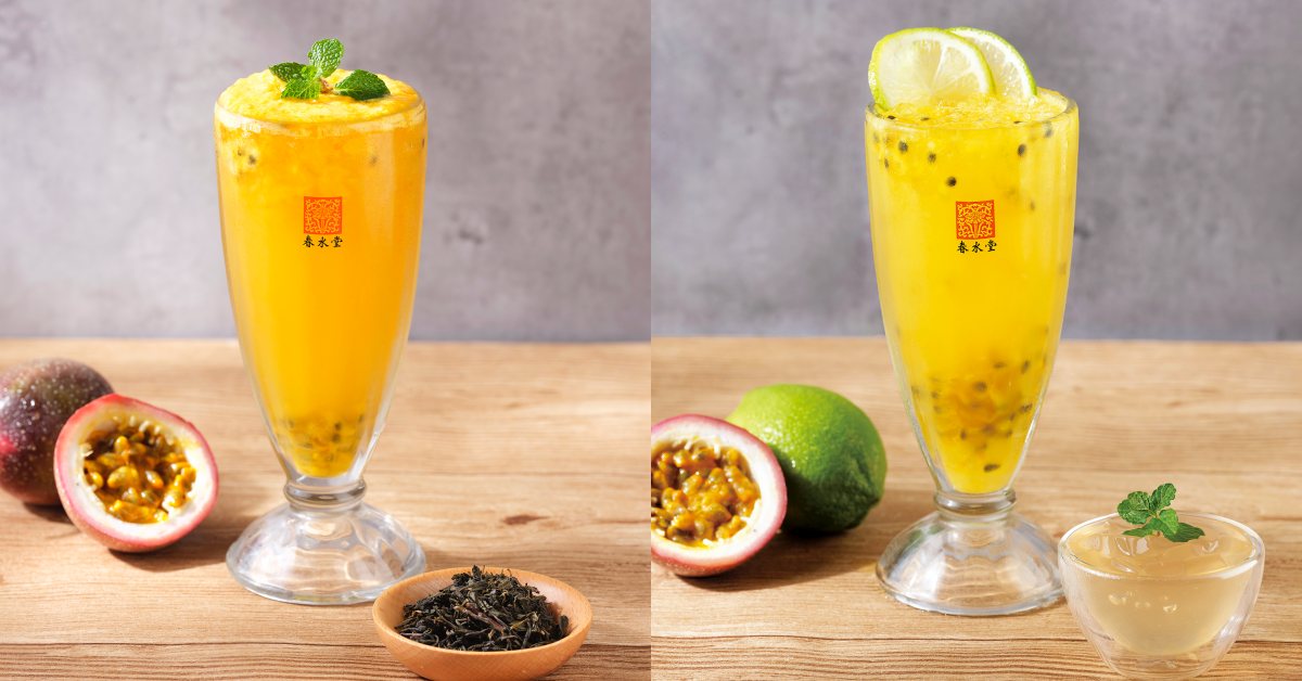 「百香粒粒綠茶」以翡翠綠茶搭配百香果,清新茉莉花香帶著酸甜感,還吃得到果粒;「百香柚檸愛玉綠茶」基底同樣是翡翠茉莉綠茶,加入滑順愛玉,並以酸甜百香果鮮汁原粒、檸檬與柚子果汁妝點,果香中帶著酸甜感。