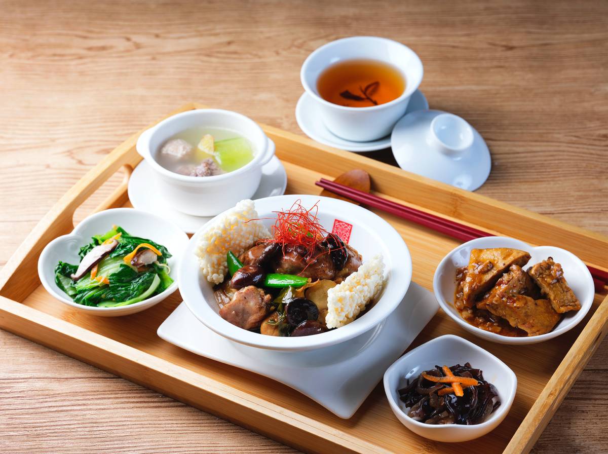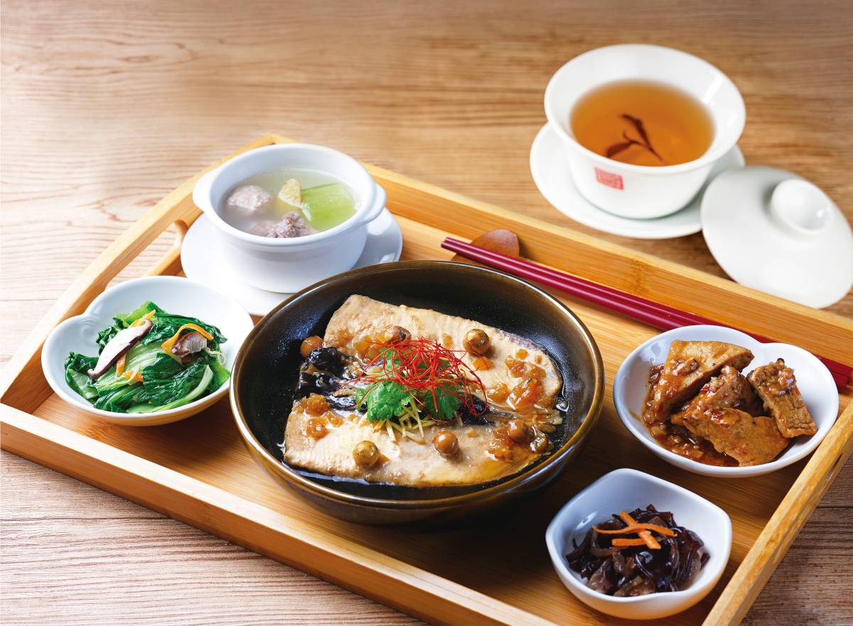 主食套餐部分,這次有香菇栗子燒與虱目魚可選。「香菇栗子燒雞套餐」使用整朵香菇、金黃栗子與國產彈嫩雞腿肉,以麻香料酒醬汁小火慢燒,香氣濃厚、醬汁相當下飯;「古早味虱目魚套餐」是以台灣的新鮮虱目魚肚為主角,搭配古早味蔭瓜與破布子調味,口感軟嫩鮮美,是款相當有在地家鄉味的料理。