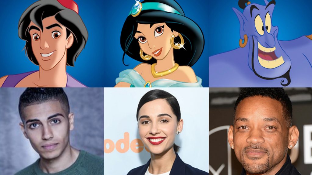電影主角阿拉丁(Aladdin)將由埃及裔加拿大演員梅納馬蘇德飾演,他和動畫中的阿拉丁一樣,有著精實黝黑的身材、濃密的眉毛與深邃的五官。