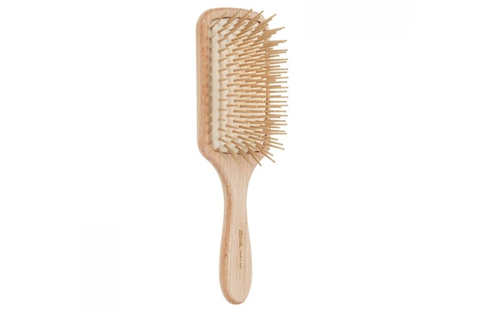 精選木心乾燥的純櫸木原料,增加產品使用的壽命,大面積的按摩彈性氣墊設計,是按摩板梳系列很受歡迎的款式。