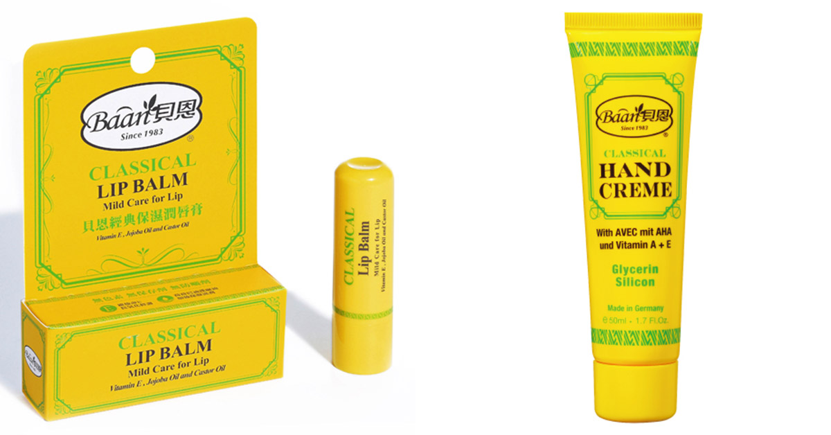 貝恩經典保濕潤唇膏嚴選頂級成分,使用安心,選用白色凡士林及天然植物萃取成分,給予最需要細緻呵護的雙唇,最滋潤的修護,產地來自台灣;貝恩經典護手霜防護型護手霜,保持手部潤滑與柔軟,維他命A&E及甘油能迅速深入角質層補充滋潤感,產地來自德國。