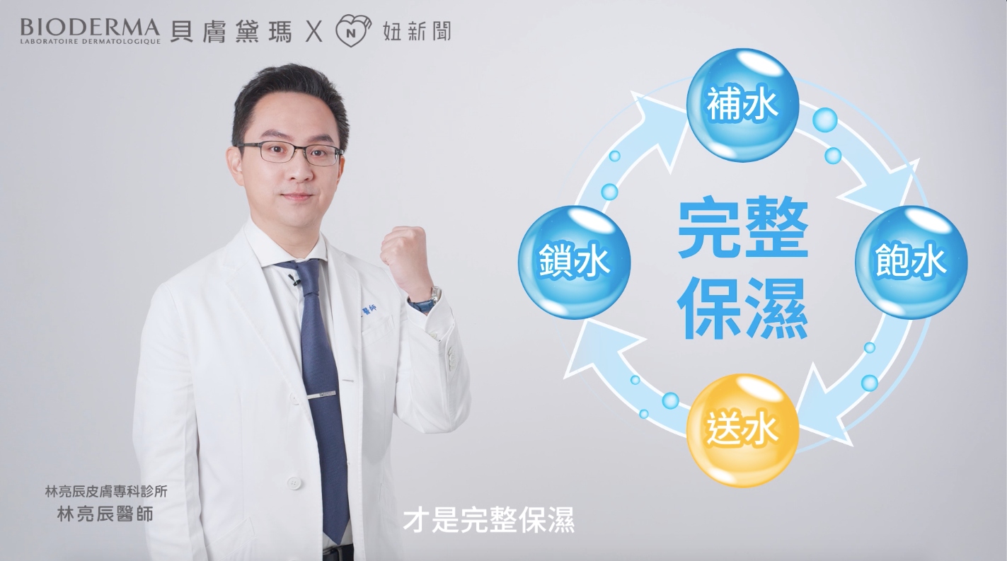 所以這個時候就需要保濕產品來幫助皮膚補充水分,降低水分的散失,同時還能加強肌膚屏障,留住水分!皮膚專科醫師林亮辰醫師透露:「目前市售的保濕產品只有補水、飽水、鎖水三種功能,但這是不夠的,完整保濕的關鍵在“送水”。」