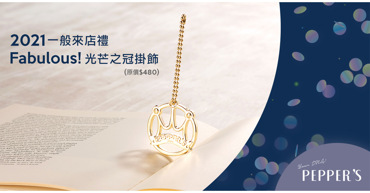 無論妳手中的五倍券要怎麼使用,2021年百貨週年慶,PEPPER’S都準備了來自「Fabulous!美好時尚」滿滿祝福!即日起全台各百貨專櫃,陸續展開!PEPPER’S會員只要到全台各專櫃,憑手機簡訊,即可獲贈【FABULOUS!王冠掛飾 乙個】。