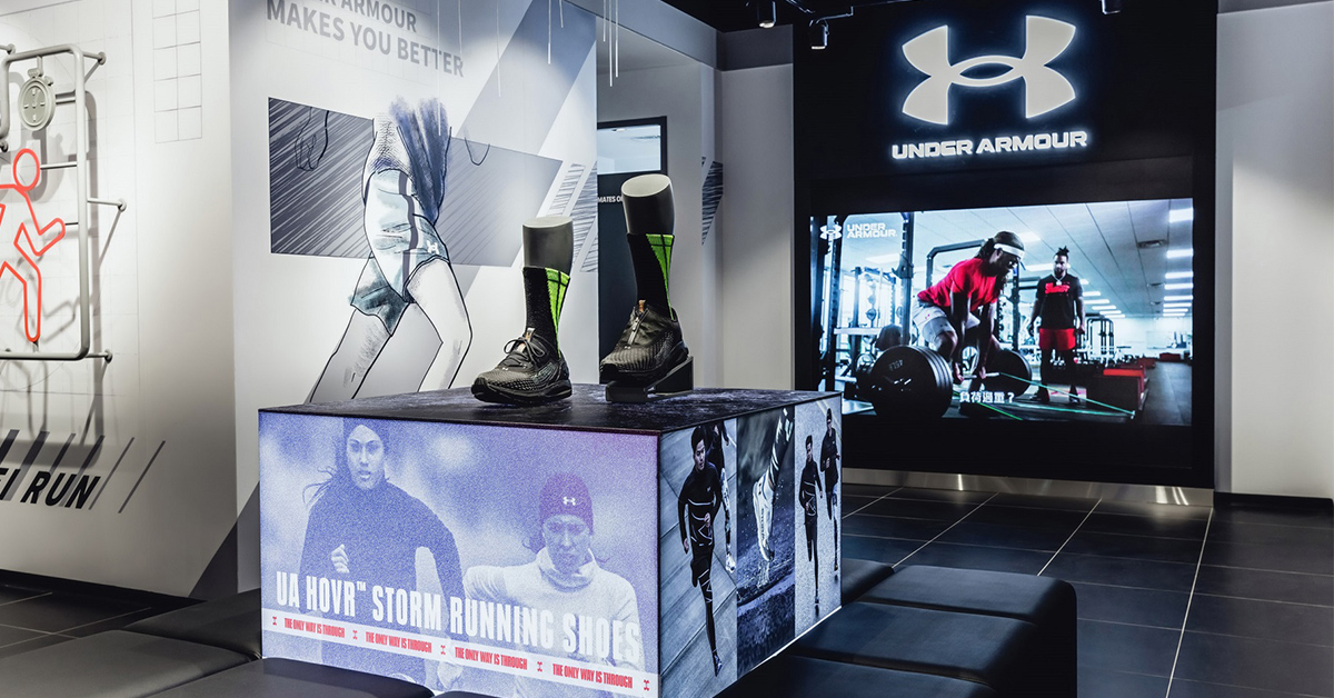 UNDER ARMOUR城市概念店的商品陳列,以滿足運動員多元需求為規劃核心,囊括跑步、訓練、籃球及女性運動等系列專區,提供更加流暢的購物動線與主題性產品介紹,讓運動愛好者能快速找到最適合自己的專業裝備,並於各系列專區設有大量LED動態螢幕呈現TEAM UA運動員故事,讓運動愛好者彷彿置身運動員訓練環境,並感受到世界頂尖運動員『The Only Way Is Through』的戰勝精神與堅毅自信,在鼓勵運動愛好者持續鍛鍊並突破自我的同時,也幫助運動愛好者在選購商品前,透過世界頂尖運動員的分享來瞭解裝備科技與機能。
