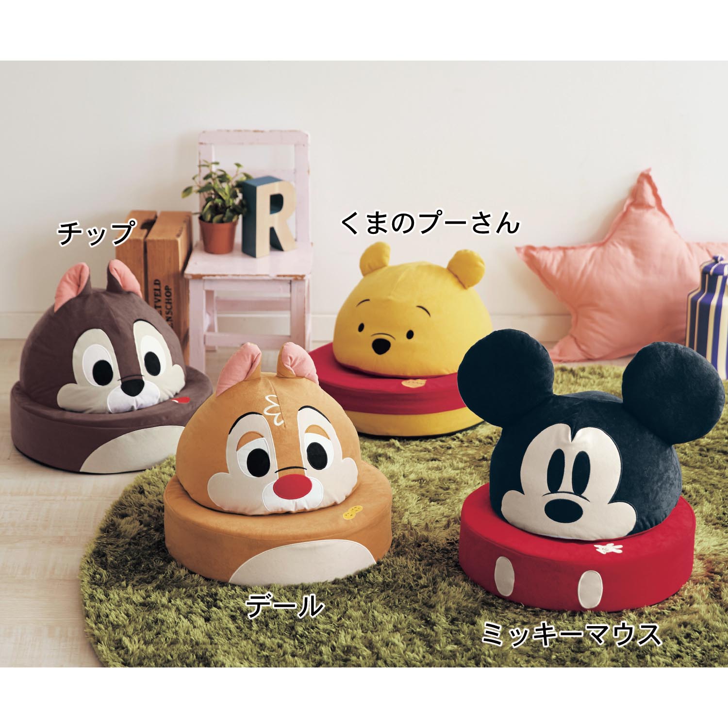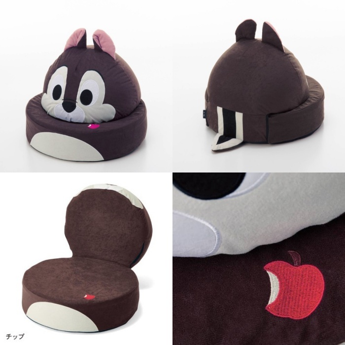 這款折疊座椅一共有4種造型,分別是奇奇蒂蒂、維尼跟米奇(終於沒有米妮了~),平常如果沒有要坐的話就把他們的頭疊在椅子上,看起來就像是可愛的迪士尼娃娃❤︎