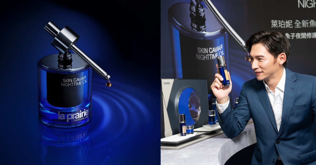 現場溫昇豪也大方分享近期的保養封存儀式。認為「夜晚」就是身心「黃金修護期」的他,相當注重睡眠品質。睡前會聽音樂、看新聞、讓身心充分放鬆。保養方面也有特別方式,在一般夜間保養:化妝水、精華液、乳霜之後,再加上一道「魚子美顏夜間緊緻精華油」,簡單三滴薄擦全臉,以最頂級的Caviar 精華油封存肌膚。第二天就會感受到臉更飽滿緊緻、有光澤,感覺保養功效都提升了一個層次。