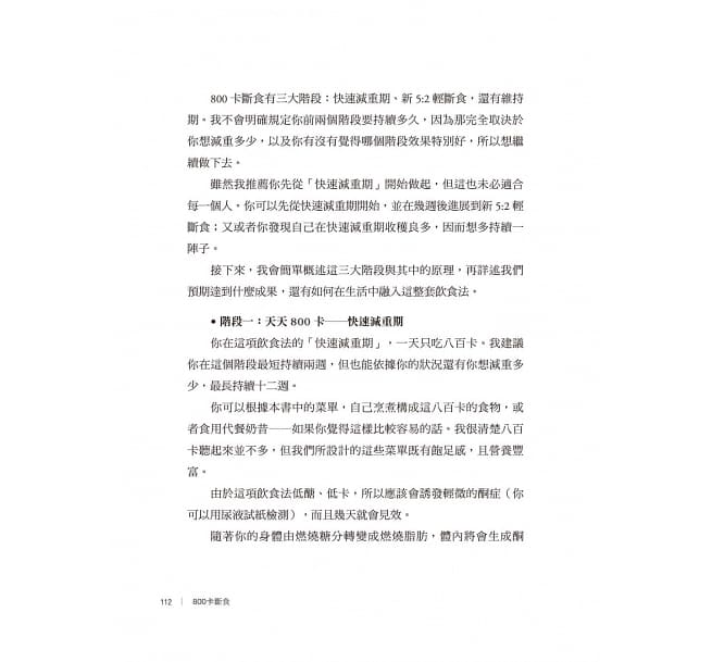 一套完美結合熱量控制、間歇性斷食的快速減重飲食法想看更多?都可以參考這本!完整剖析肥胖成因,以及最新「800大卡斷食法」背後的科學證據、怎麼執行、斷食日該怎麼吃?都有詳解,同時收錄50多道專為每日800大卡所設計的食譜,還附上「非斷食日的加菜版本」,書內還提供完整醫學檢驗清單、清楚分析壓力與飲食的關聯,並提供減壓練習,,不讓壓力成為減重的障礙~