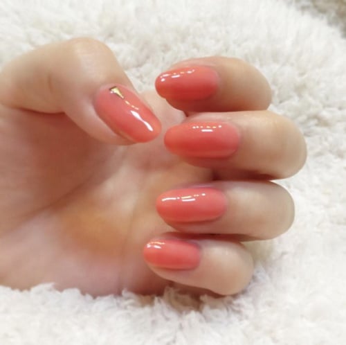 像是常見的蜜桃色、偏紅或黃的珊瑚粉色等,其實都可以算是「哈密瓜色」。不過仔細觀察,日本女生推薦的哈密瓜色,可不只針對色彩呢!還要具備透明度、水潤感或是光澤感等,像是水果般帶水分的質感,才是她們力推的顏色。而這樣的色彩,又可以怎麼搭配呢?接著就讓妞編輯帶來幾款「哈密瓜色」的指彩風格應用,讓妞妞們參考一下吧!