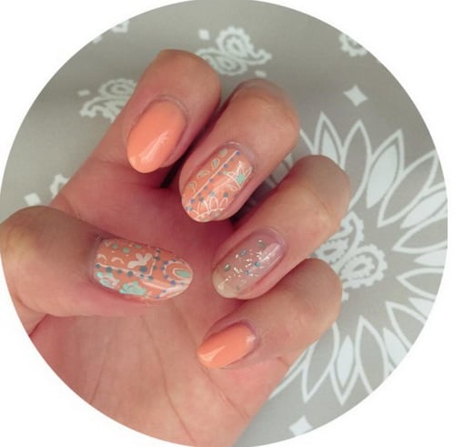 想要跟今年流行的民族風搭配,則可選擇黃感比較明顯的哈密瓜色,再以跳色的方式搭配,即可搖身一變為個性又時髦的指彩風格。