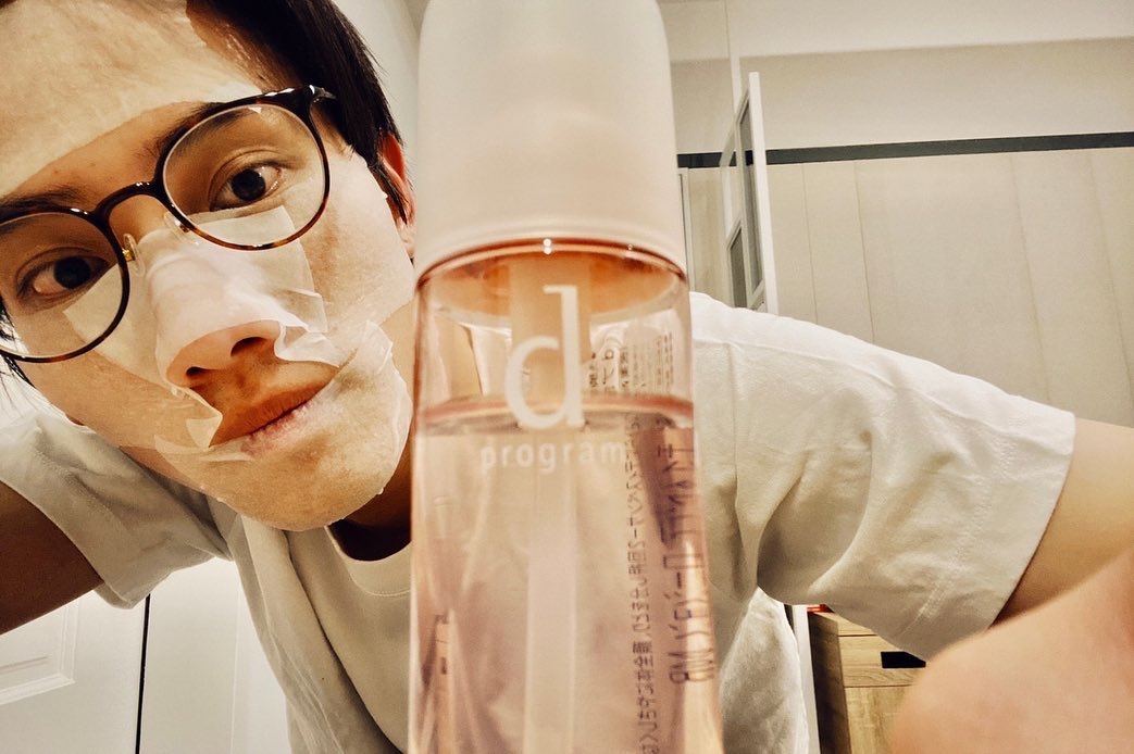 坦言是近期才開始學如何好好保養肌膚的范少勳,他笑說以前都覺得在化妝前交由化妝師保養就差不多了,但後來發現如果自己沒好好保養,上妝會狂浮粉,還得要一直不斷補妝,會造成彩妝師的困擾,也會讓自己在鏡頭前的狀態看起來粉很厚。為此他認真學習保養,回家後先卸妝、洗臉洗兩次,趁臉上有泡泡時,再用刮痧板全臉按摩,接著用美容儀使用清水先導出,再用化妝水導入,接著還會用化妝棉浸潤化妝水濕敷,最後再用乳液鎖水。一套流程下來約快一小時,不管再累再想睡,他還是會乖乖做完整套。