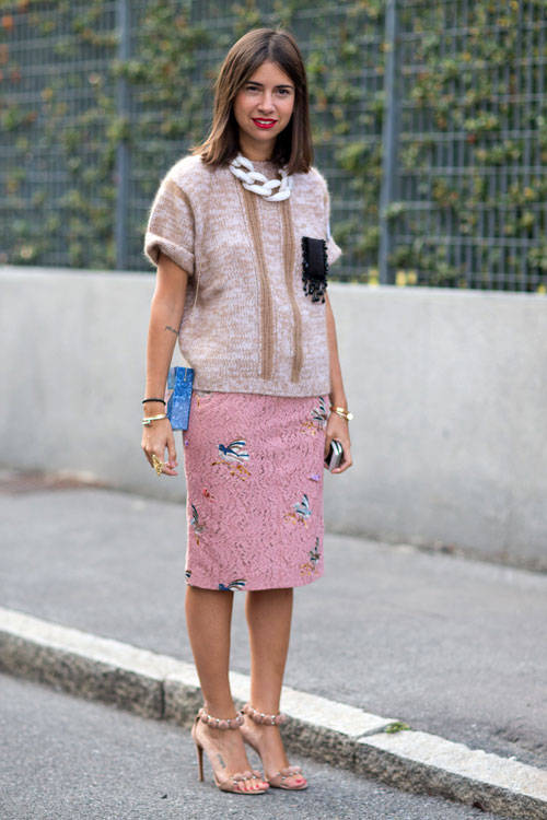 另外,粉紅色的球鞋、絲絨鞋、高跟鞋,以及耳環、項鍊等飾品,也是不太會出錯的選擇。從身上的小面積開始,展現優雅知性,彰顯女人味,