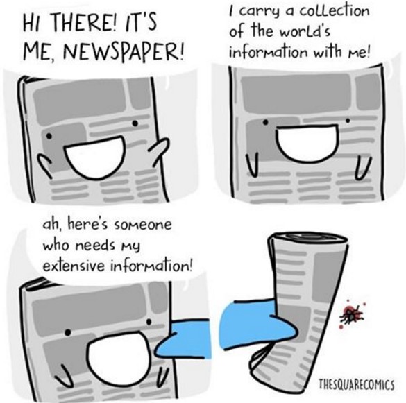 在這數位時代,報紙已經淪落為打蟲的工具了...
