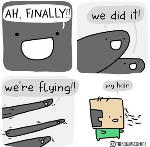 看到前面3格漫畫還不曉得這灰灰長長的條狀物是什麼?等到最後一格才發現是光頭大叔最珍貴的頭髮啊~(想要用長髮遮蓋自己是禿頭的事實)