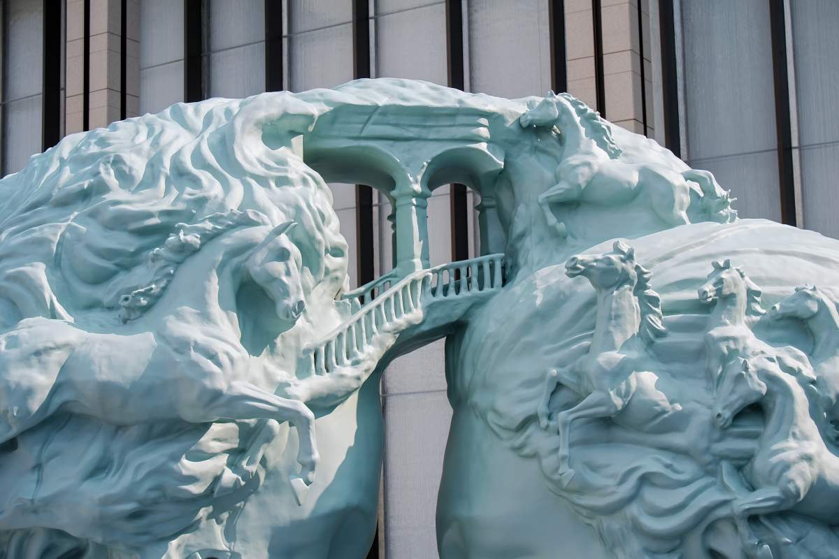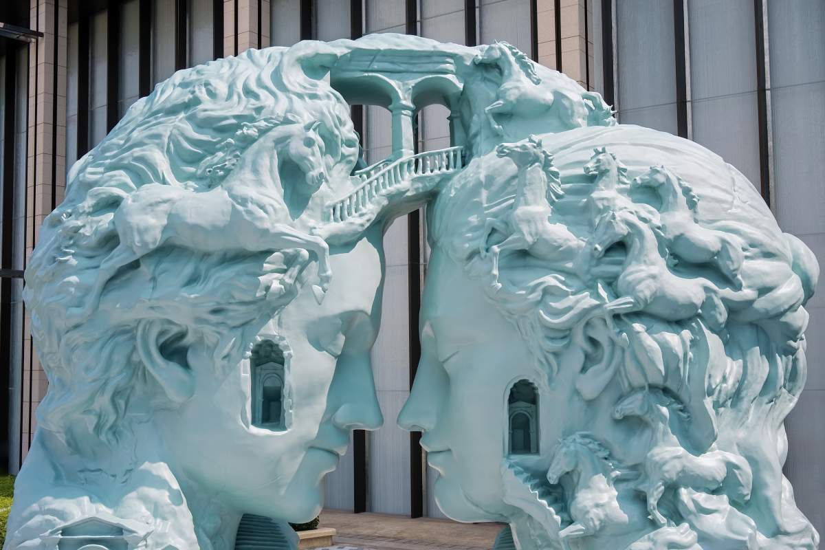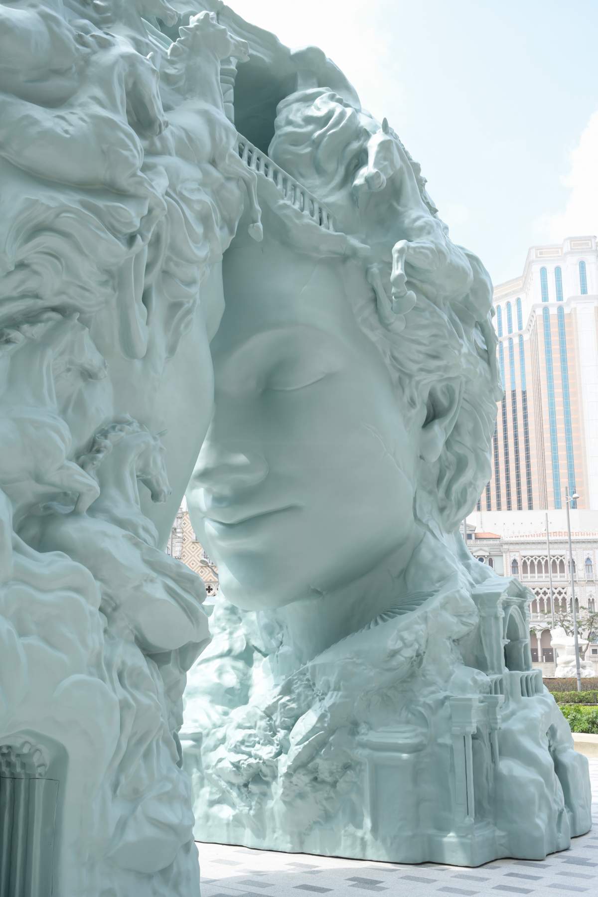 2026澳門最受關注的打卡新地標,非《夢幻之門》莫屬了!由來自紐約的當代先鋒藝術家丹尼爾‧阿爾軒,特別為新濠天地定製的大型藝術裝置《夢幻之門》,以藝術語言詮釋「Dream Beyond」的品牌理念,在今年3月10日正式揭幕。這是丹尼爾‧阿爾軒首次以兩座相對而立的空心雕塑頭像為主體,頭像內部被精細鏤空成為錯綜複雜的樓梯,形成視覺與心理意義上的「迷宮」,喻意人類意識的複雜結構與思維路徑。仔細看樓梯盤旋交錯,看似通往深處,卻又在視覺上構成一種循環與懸置的狀態,而從迷宮深處躍出的馬匹,其動態造型打破結構的靜止感,代表力量、前行與生機。