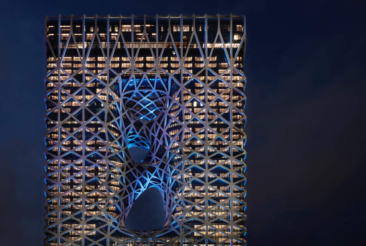 演員井柏然力推,新濠天地旗下相當受到矚目的頂奢酒店「摩珀斯」,是首位榮獲普立茲克獎的女性建築師扎哈 . 哈迪德女爵士遺作之一,耗資11億美元打造,以玉飾為設計靈感,突破多項建築技術,是創新與奢華的結晶,為全球首座自由形態外骨骼結構的摩天大樓。使用了28,000噸結構鋼,為巴黎鐡塔鍛鐵量的四倍,48,000平方米外牆玻璃,足以鑲嵌120,000幅藝術名畫《蒙娜麗莎的微笑》,以及來訪打卡必拍的40米高中庭大堂,足以容納一個雙旋摩天輪。12部全景觀光電梯、位在酒店的40樓的漂浮於澳門半空的天際泳池,都是來到摩珀斯一定要打卡的人氣熱點。