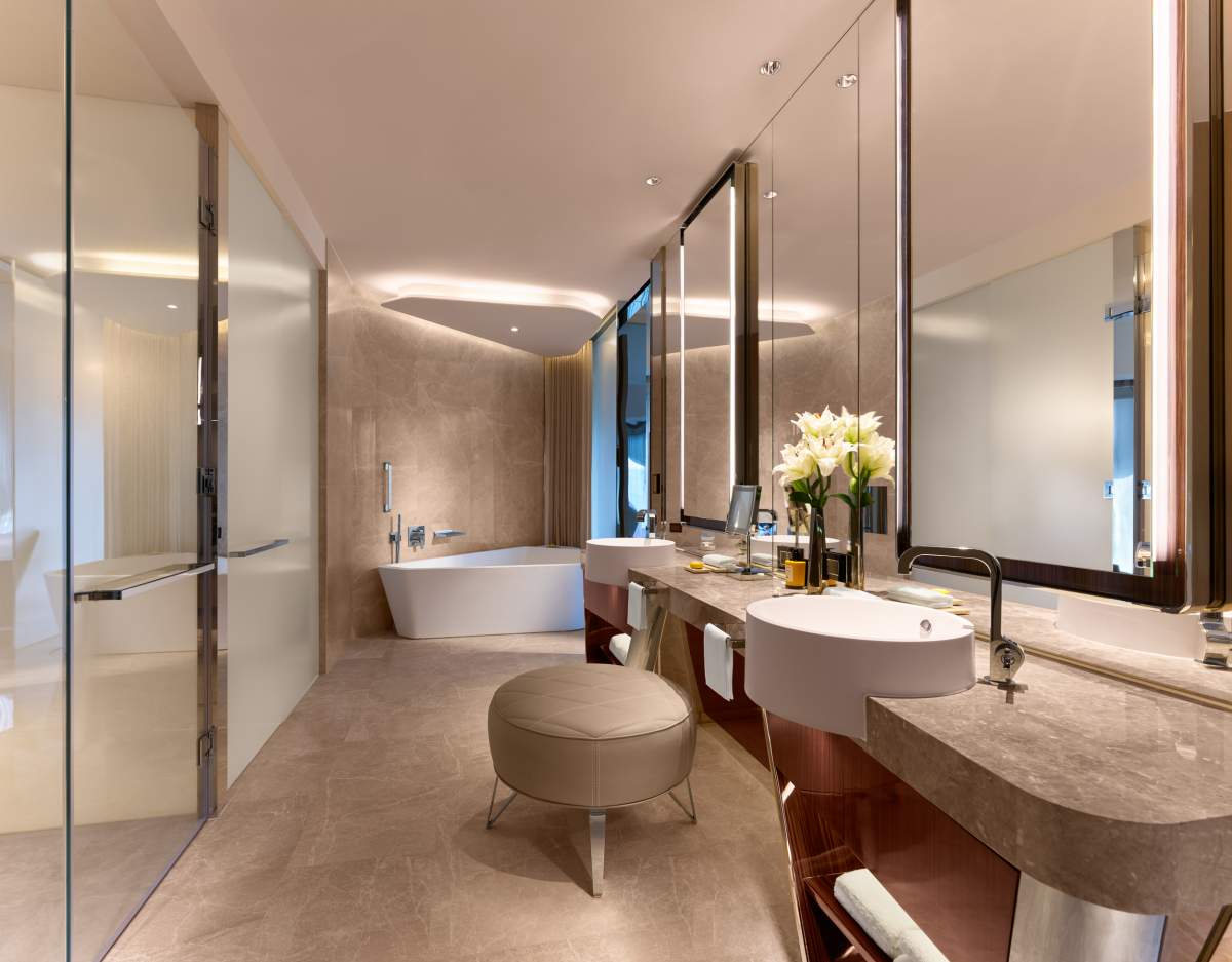 不只酒店外觀極致奢華,酒店內的客房、套房及別墅,均由世界頂級室內設計師Peter Remedios擔綱設計,房間內選用的備品也相當高奢,包含Dyson吹風機、義大利百年奢華香氛品牌Acqua di Parma、Royal Selangor浴室配件等,還有寬敞的大浴缸,入住後真的會捨不得離開飯店,太舒服了。