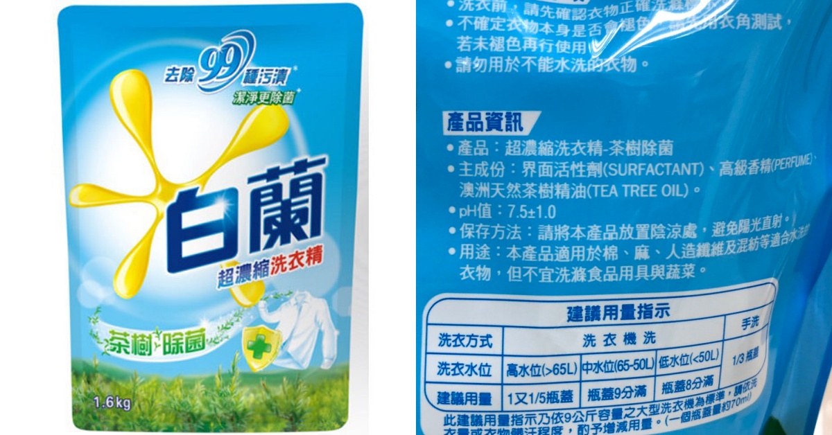 品名:白蘭 茶樹除菌洗衣精補充包