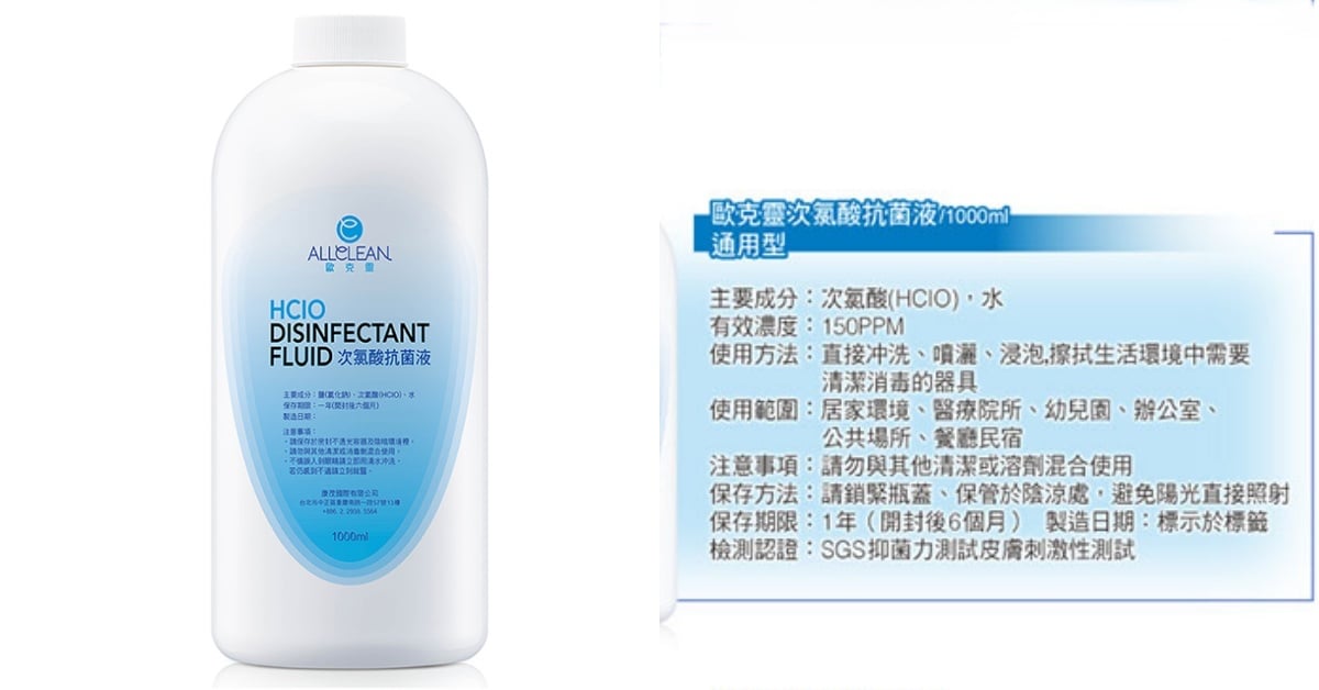 抗菌成分:sodium hypochlorite次氯酸鈉
