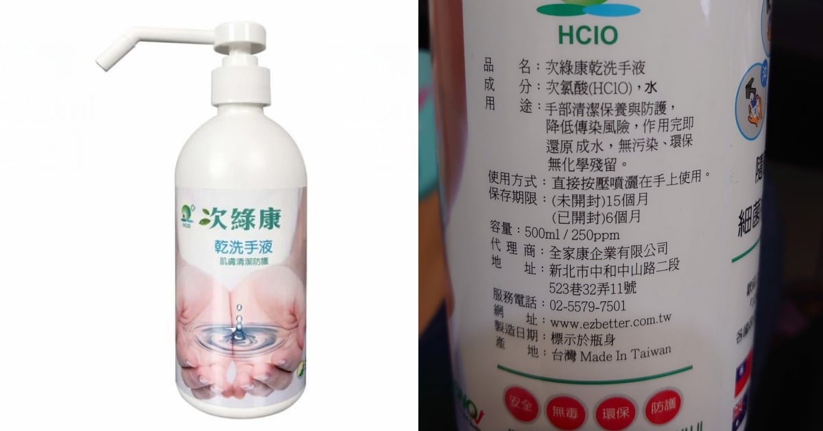 品名:次綠康 乾洗手液
