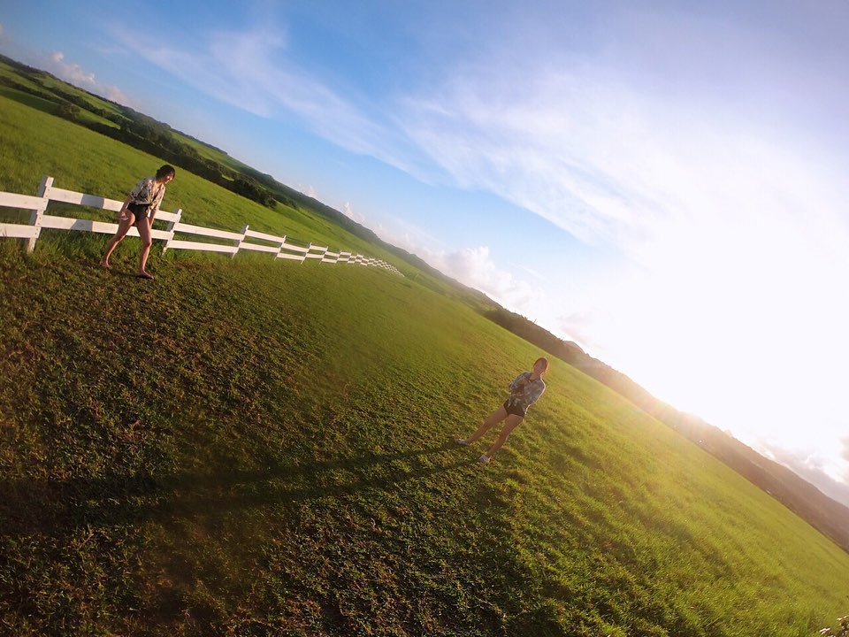 墾丁的天氣,大部分都很晴朗,即使是冬天也沒有冷風颼颼的蕭瑟感,藍天白雲以及翠綠的大草原,再搭配兩旁的白色欄杆,拍出來就像是清新的日系雜誌一般,超級美的。