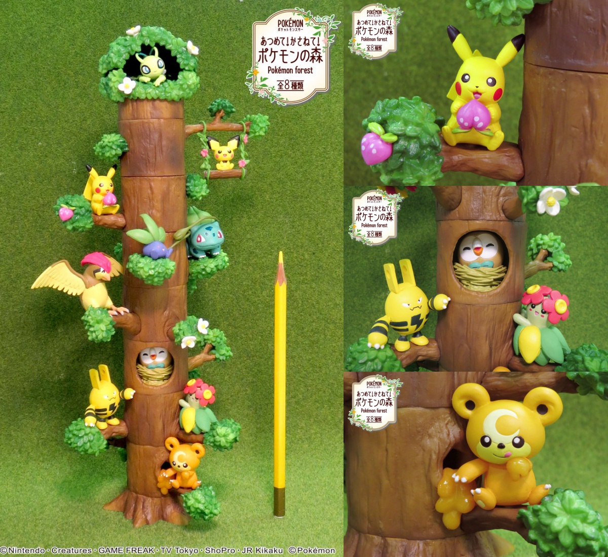 如果收集完整一組就能疊出一棵接近兩支筆高的大樹,可愛的時拉比從樹頂探出頭來,下面是皮丘在盪鞦韆,皮卡丘、妙蛙種子、比比鳥、電擊怪、美麗花各自佔據枝頭,仔細一看還有隻木木梟躲在樹洞裡,最底下熊寶寶正在偷吃蜂蜜,有沒有很歡樂~