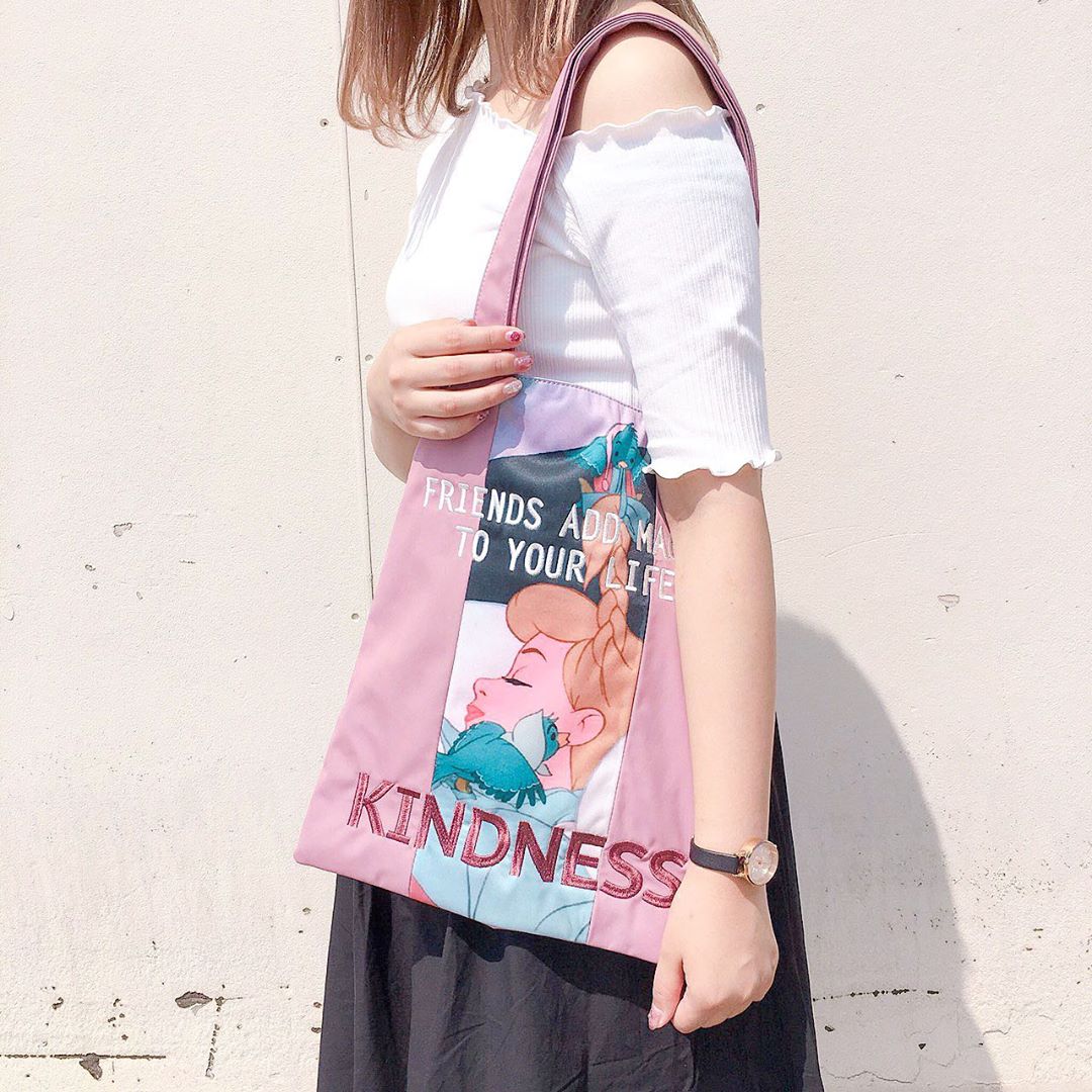 此次推出了手提袋、小收納包與手機殼,先介紹手提袋給各位。「仙度瑞拉」手提袋以賴床中(?)的仙度瑞拉為圖案,主色是粉色,搭配故事核心「Kindness」(善良),集經典於一身,造型相當有特色。(妞編輯個人最想pick這款)