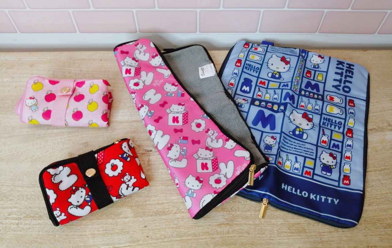 HELLO KITTY多功能吸水收納袋,一組150元,四款圖樣隨機販售。