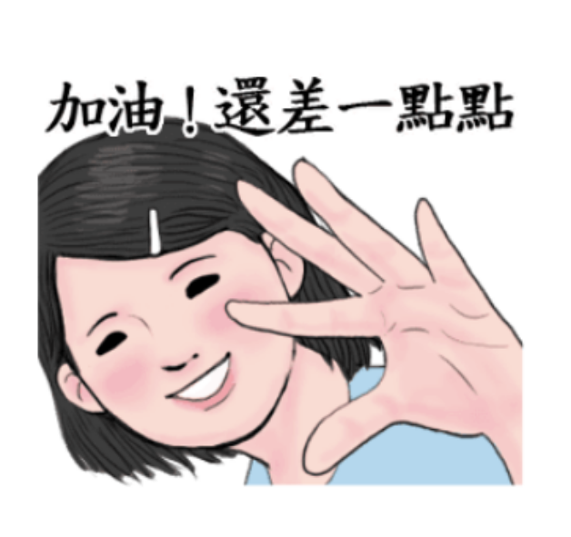 「加油!還差一點點!」(手勢swag)怎麼手機小姐看貼圖的表情完全感覺不到真心要加油和鼓勵的心XD