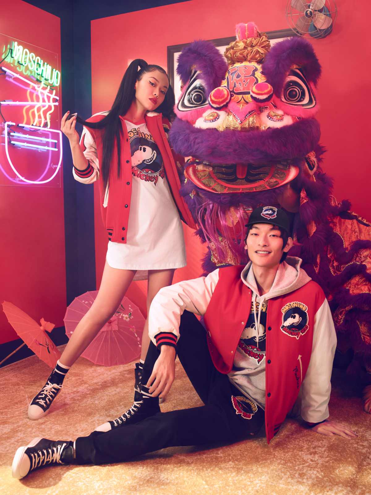 除了服裝系列之外,非常有年味的形象大片是由Jeremy Scott與時尚造型師、模特兒兼創意人士Mia Kong與超模祁俊凱聯手呈現,以白天到黑夜為概念的拍攝氛圍,結合麻將、紅包、桃花和舞獅等傳統中國新年元素環繞,穿上這系列就像穿上熱鬧的年節假期一般熱鬧喜氣!
