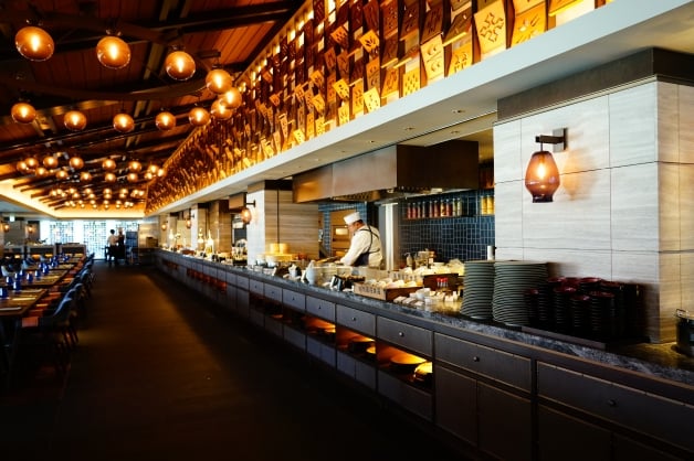 全日供餐的自助餐廳「Ishigaki Bold Kitchen」,入口處有兩個,其一是從一樓為團體客人接待的大廳,其二則是從新館North wing的二樓進入,整體豪華感兼設計感十足。重點是有超過100道、來自全世界不同國家和城市的異國佳餚美食(驚),另設有可愛的「兒童專區」,像是棉花糖機和刨冰機,將玩樂與用餐完美結合,小孩天國無誤!