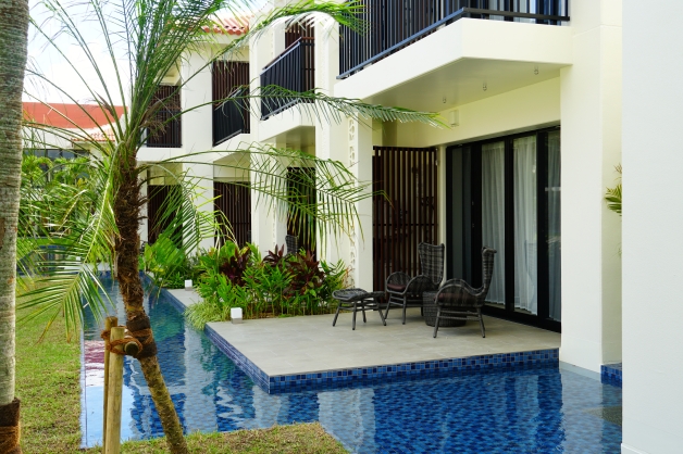 游泳池總共有三個,佔地面積廣闊,周邊矗立著高大的棕櫚樹,再加上泳池躺椅、帳篷沙發等,給人一種舒適的度假休閒感,只要是飯店的房客,設施均可免費享用(除了帳篷區需付費),妞妞們要玩水記得要攜帶房間內的膚色毛巾喔!