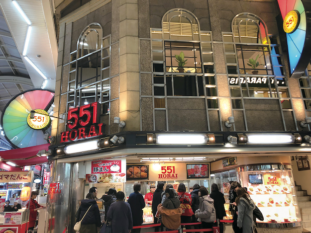 創立於1945 年的「551 蓬萊」,位在戎橋筋商店街的本店人潮絡繹不絕,叉燒肉包