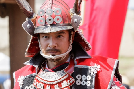 《真田丸》中堺雅人身上的赤色盔甲、頭盔上都有著六文錢的家徽。
